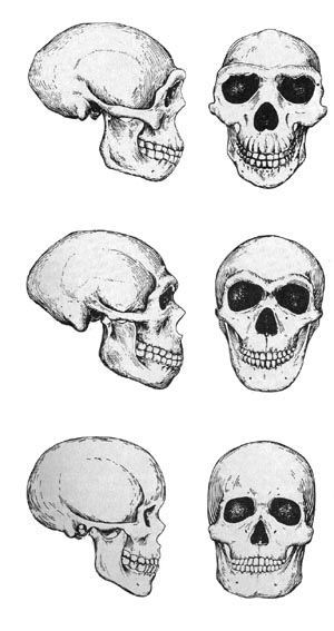 Находки из Омо: Сверху и в середине: череп Омо 1 Внизу: череп Омо 2 |