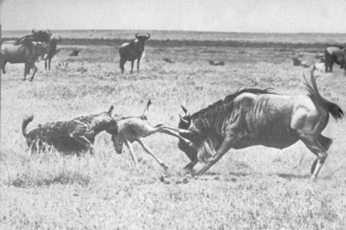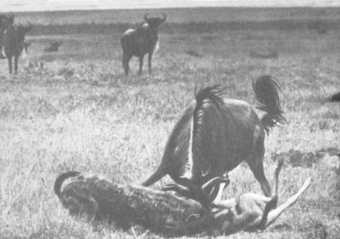 Веллингтон добыл теленка гну, хотя мать отчаянно его защищала.