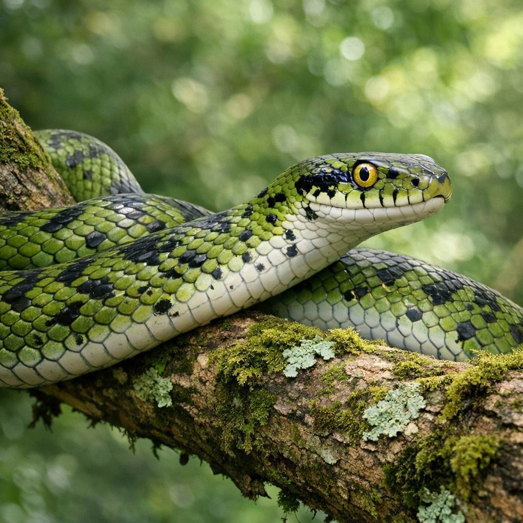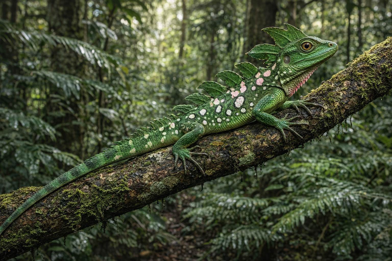 листвы и передвигается, отталкиваясь своим мускулистым хвостом, извиваясь всем